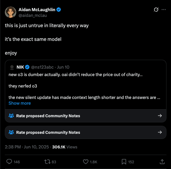 There's a ridiculous theory floating around Reddit and Twitter: greedy model companies are selectively dumbing down their models for profit. The claim is that models get dumber over time, or during peak periods, through sneaky "quantization."